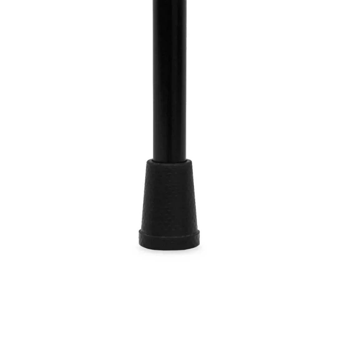 Ytan har ett räfflat mönster som förstärker greppet på hala golv och ojämna underlag. Gummit är tillräckligt mjukt för att absorbera vibrationer, men samtidigt tillräckligt stabilt för att ge pålitligt stöd. Produkten är svart, har en basdiameter på 26 mm och en vikt på endast 20 gram – vilket gör den till ett lätt och smidigt alternativ för daglig användning.