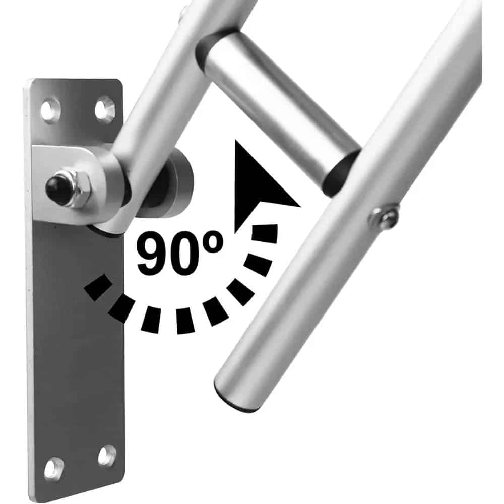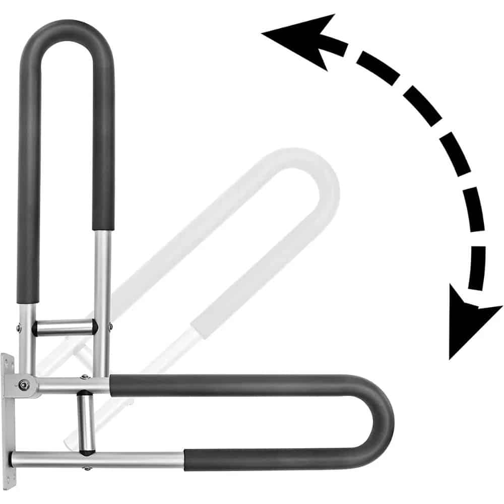 Stödhandtaget kan fällas upp till 90 grader. När det inte används kan det fällas upp mot väggen för att frigöra utrymme runt toaletten.