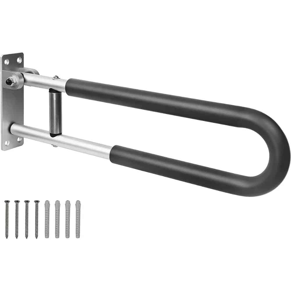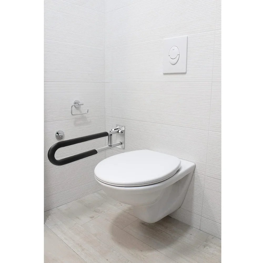 Fällbart stödhandtag 58 cm med mjuk vaddering för toalett. Stabilt stödhandtag i aluminium som fälls upp mot väggen och monteras med skruv.