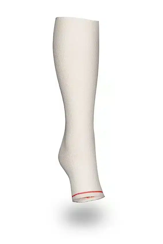 Materialet är en elastisk bomullsblandning som känns mjuk och andas, dessutom behåller strumpan form och kompression efter tvätt. Eftersom skaftet kan klippas vid behov anpassas längden enkelt, på så vis undviks veck och tryck. Strumpan är tåfri, därför blir applicering smidig och tårna får full rörelsefrihet. Produkten är framtagen som förbandsstrumpa och antitrombosstrumpa; enligt förpackningen används den med fördel vid svullnad eller ödem, för trombosprofylax, vid venösa bensår och vid åderbråck. Tvätta efter varje dags användning för bibehållen funktion.