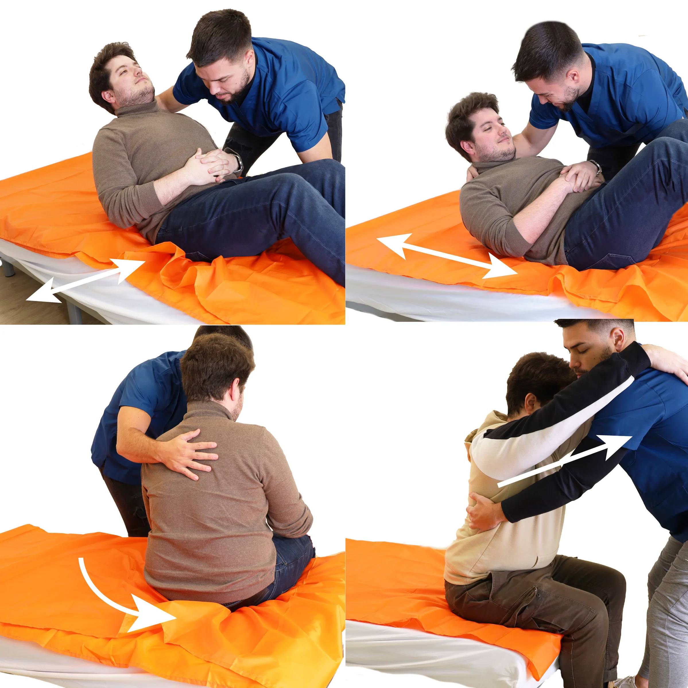 Placering sker genom att produkten positioneras under användaren på ett horisontellt underlag. Den smarta strukturen gör att man kan utföra kontrollerade ompositioneringar utan behov av integrerade handtag eller fasta installationer. Ett glidlakan tubformat fungerar utmärkt i sovrum eller på vårdinrättningar där man behöver en snabb och säker lösning för lägesändring.