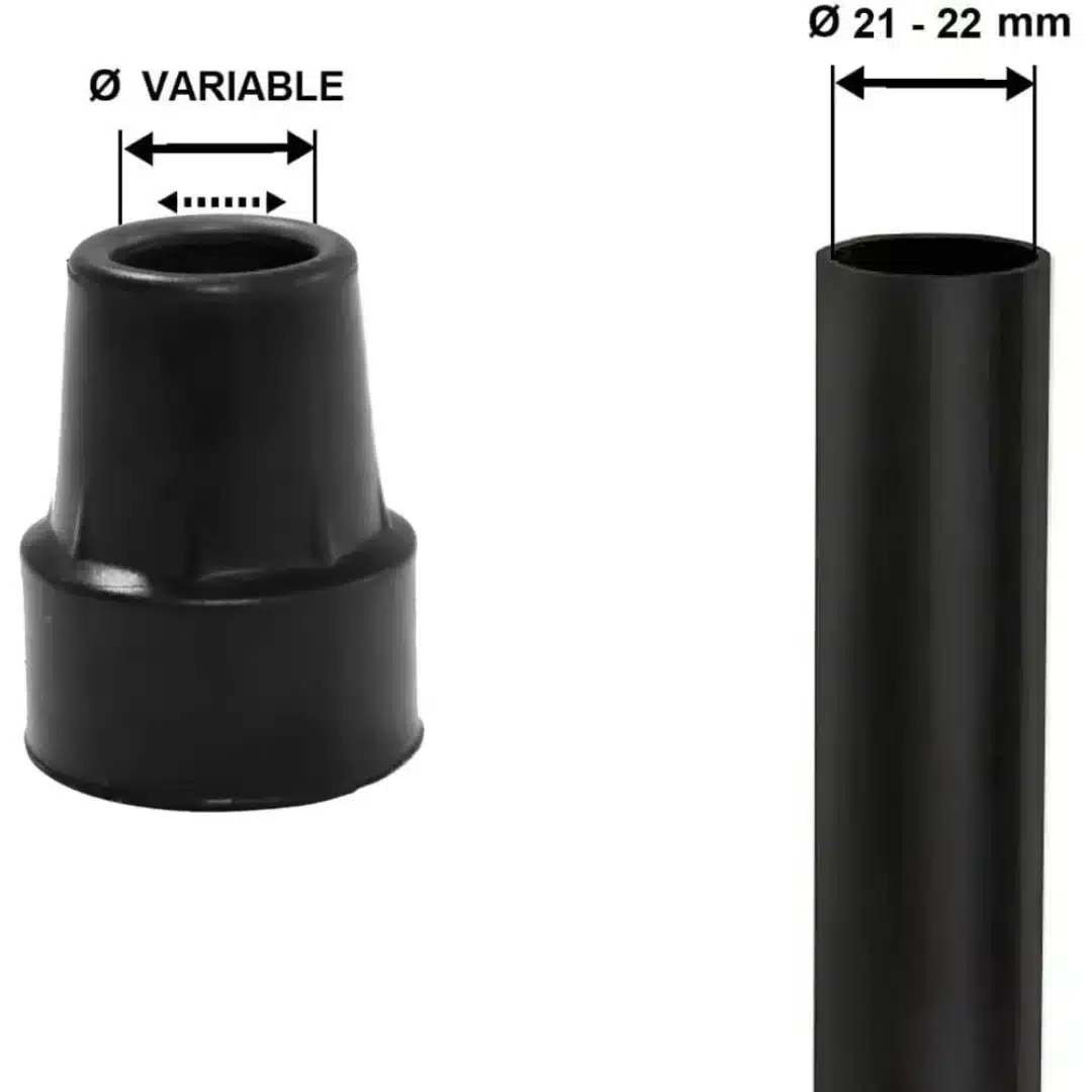 Kryckdopp i svart PVC från KMINA, anpassad för 20–22 mm rör. Ger stabilitet, halkskydd och enkel montering på kryckor eller käppar.