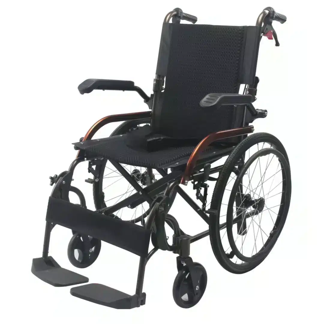 Lättvikts rullstol modell 2242 är en smidig och hållbar rullstol som kombinerar komfort och funktionalitet. Med en vikt på endast 11,5 kg är den enkel att hantera, transportera och förvara. Rullstolen är tillverkad med en robust aluminiumram och en bekväm sits i nylon, vilket ger både hållbarhet och stabilitet för dagligt bruk.