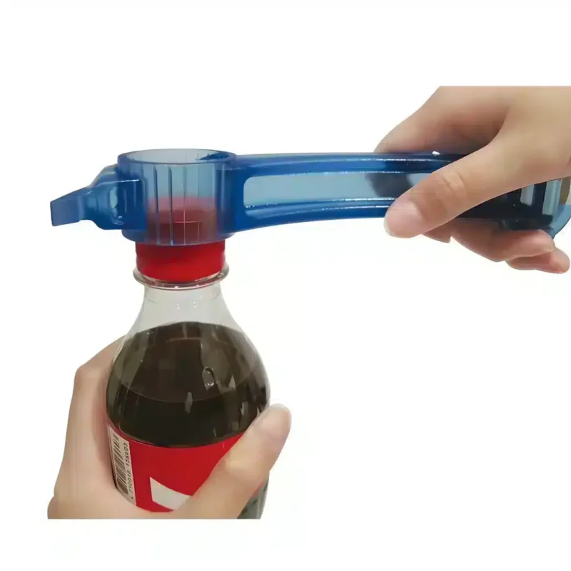 Det ergonomiska handtaget i blå polykarbonat ger ett stabilt grepp även för den som har nedsatt handstyrka eller rörlighet. Med sin mångsidiga design kan du snabbt öppna allt från skruvlock och flaskor till konservburkar med ringöppning.
