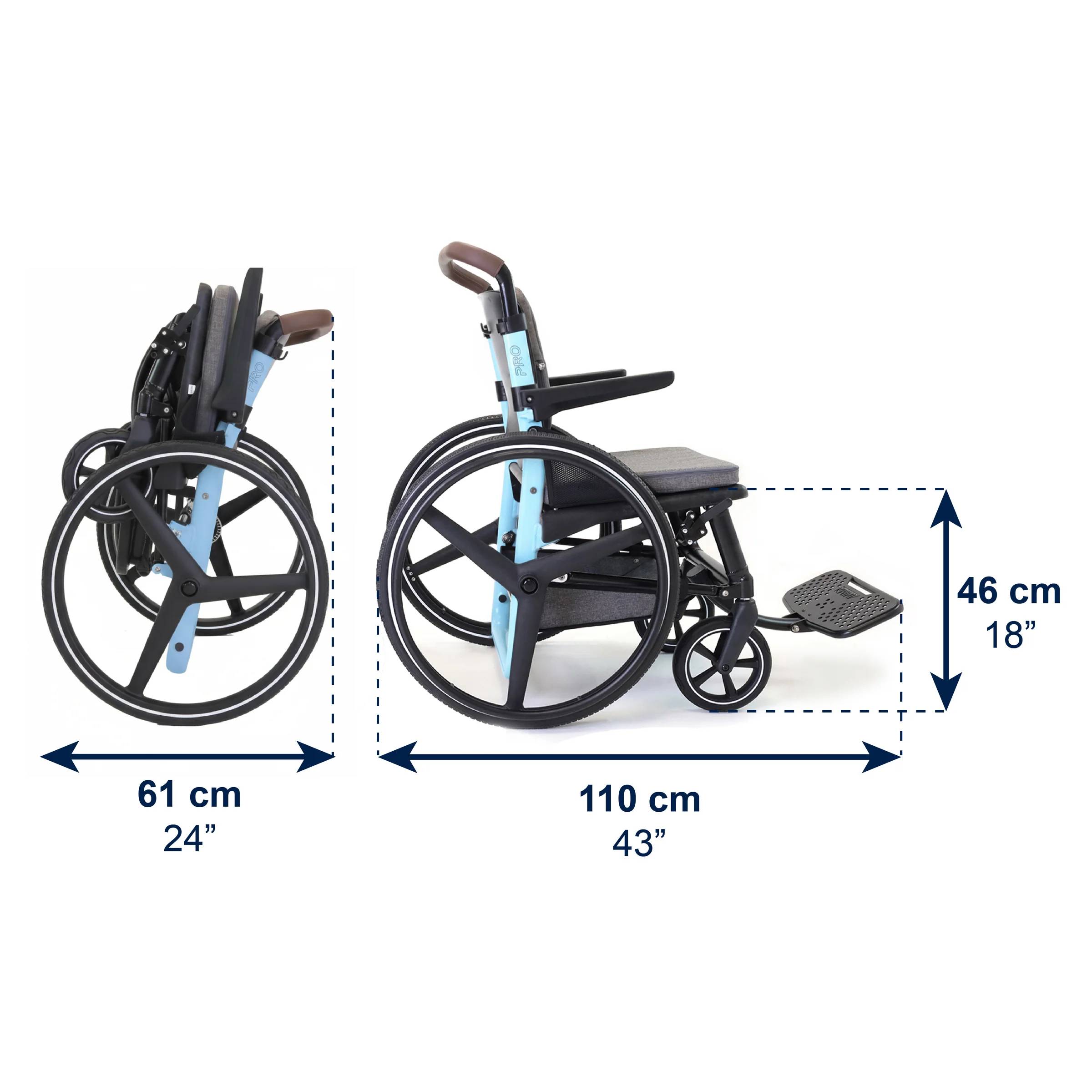 Rullstol PRO blå – Prisbelönt design för maximal rörlighet