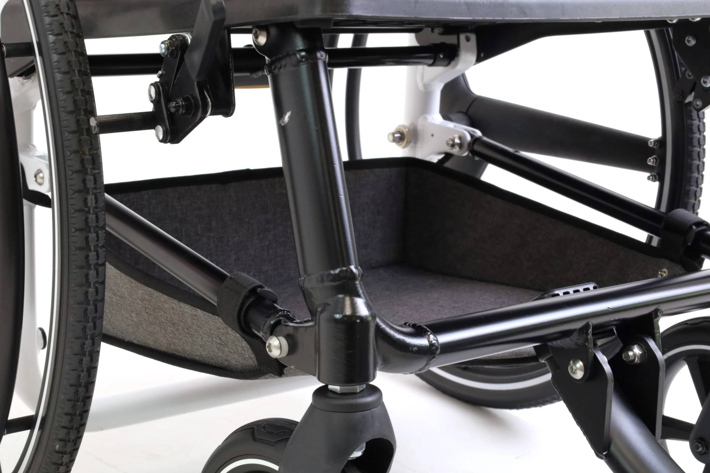 Integrerad förvaring: Den är utrustad med en förvaringskorg under sitsen samt en bakre krok för väskor och personliga tillhörigheter.