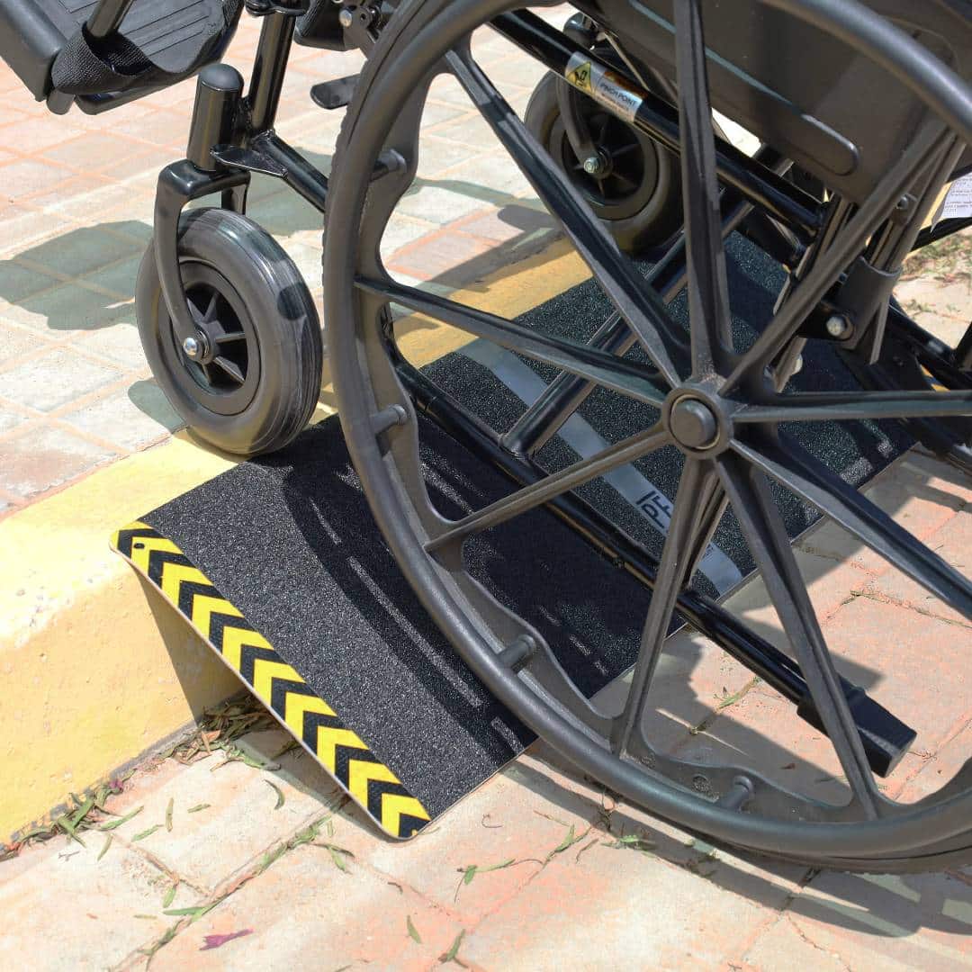 Rullstolsramp 30 cm i aluminium för säker passage över trösklar och kantstenar med halkskyddad yta för stabil användning