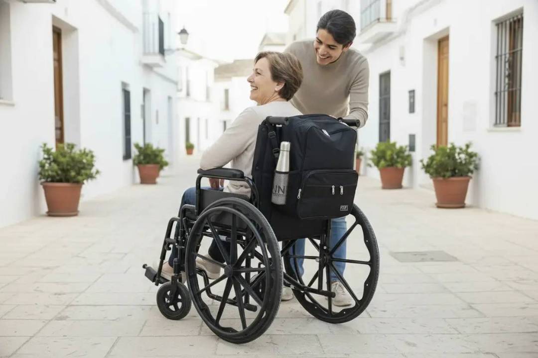 Rullstolsväska är en bakmonterad förvaringslösning som fästs på rullstolens handtag och ger tillgång till personliga tillhörigheter under förflyttning. Produkten är utformad för att sitta stabilt bakom ryggstödet och möjliggör åtkomst från baksidan. Rullstolsväska passar de flesta rullstolar med standardhandtag och kan även användas på rollatorer med liknande konstruktion.