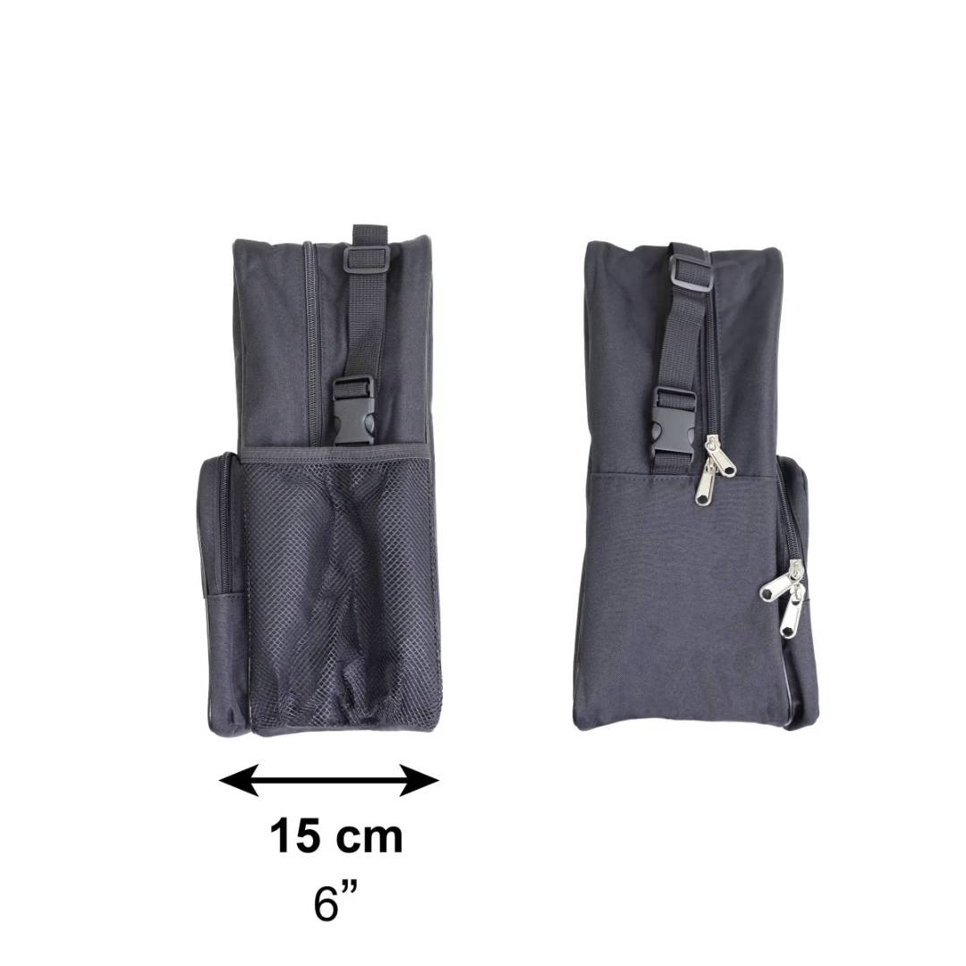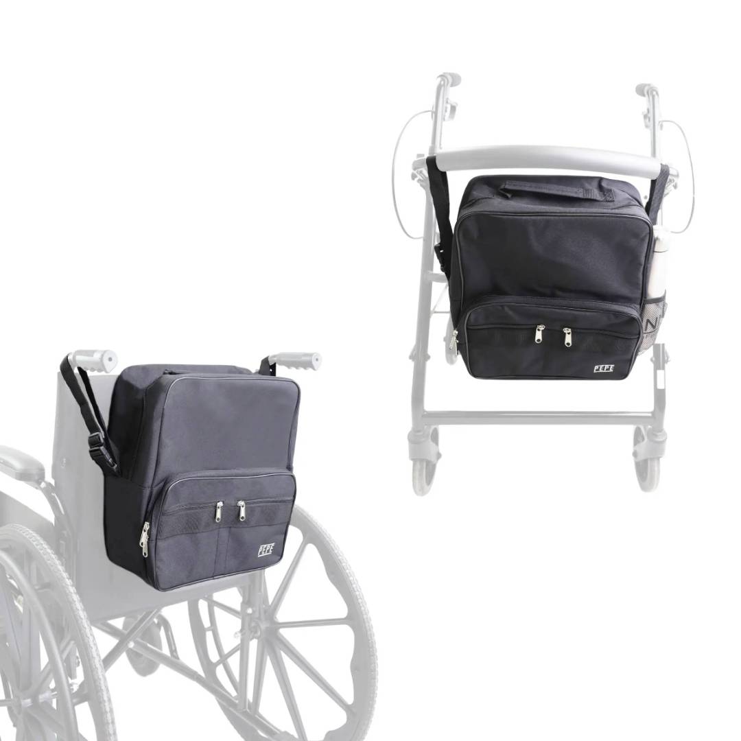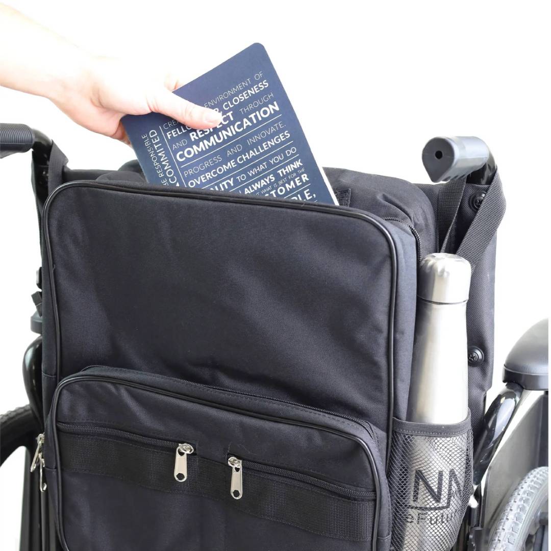 Rullstolsväska svart med flera fack och bakmontering för enkel och organiserad förvaring