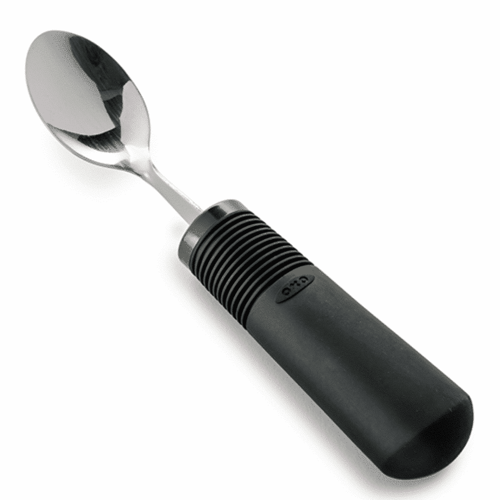 Tesked med stort grepp är en ergonomisk lösning som underlättar vardagen för personer med svårt rörlighet eller nedsatt styrka i händer och handleder. Den böjbara designen gör att skeden enkelt kan justeras både åt vänster och höger, vilket därför gör den perfekt för anpassning till individuella behov.