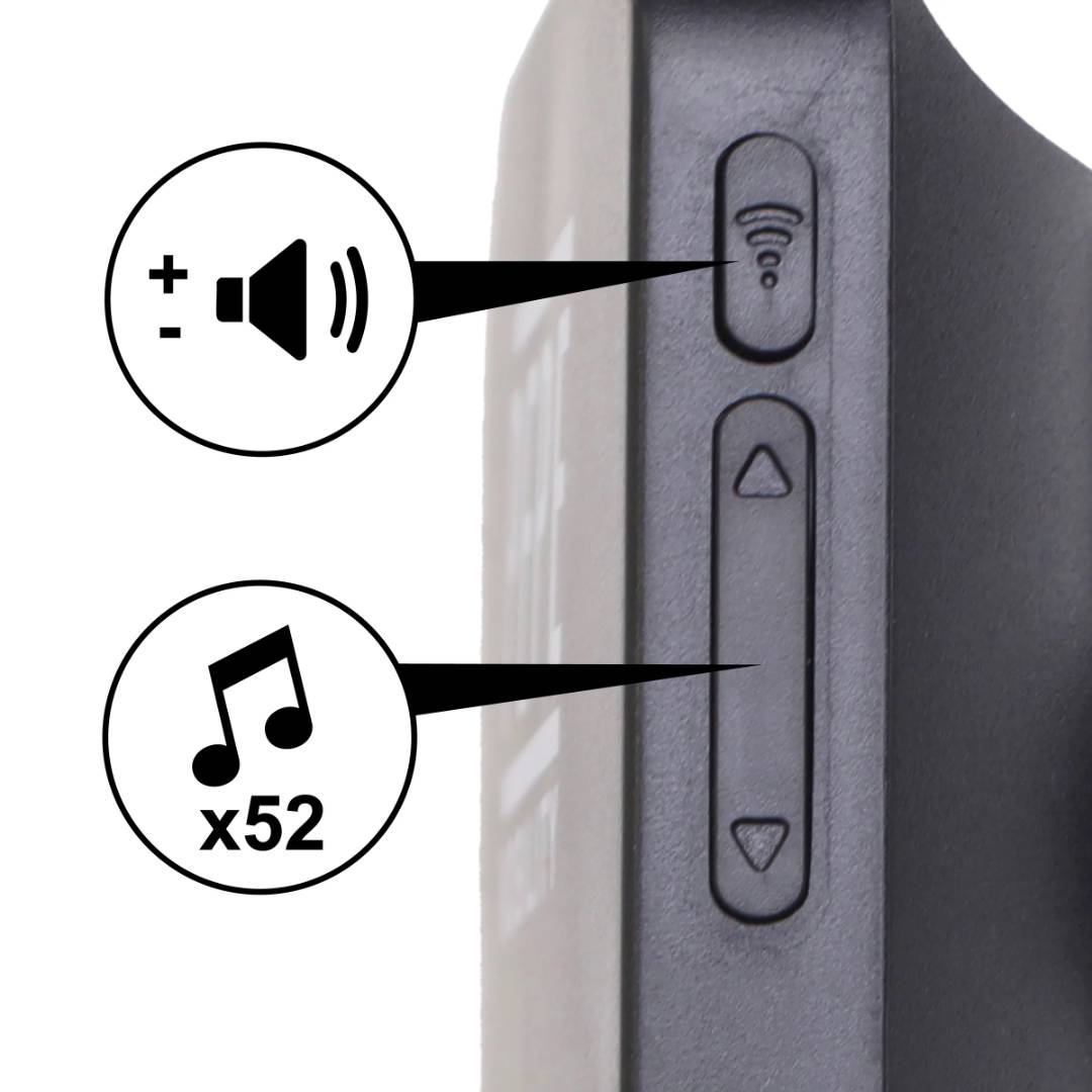 Inställningar: 52 melodier och 4 volymnivåer